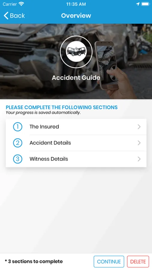 - Step by step accident scene guide to obtain crucial information at the scene of an accident.