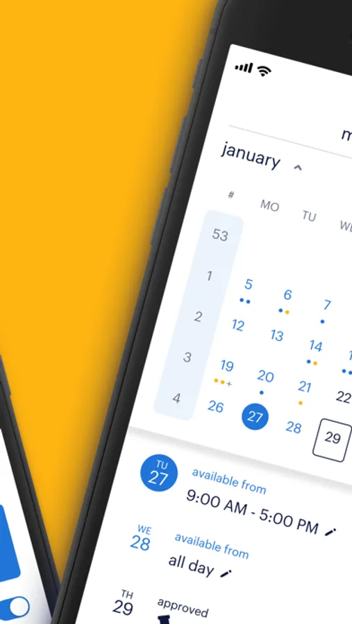 • Easily set and adjust when you are available or unavailable to work (entire days, or part of the day)
