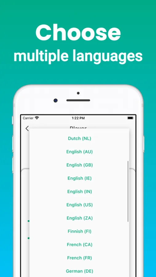 Note: For missing languages, go to Settings → Accessibility → Spoken Content → Voices