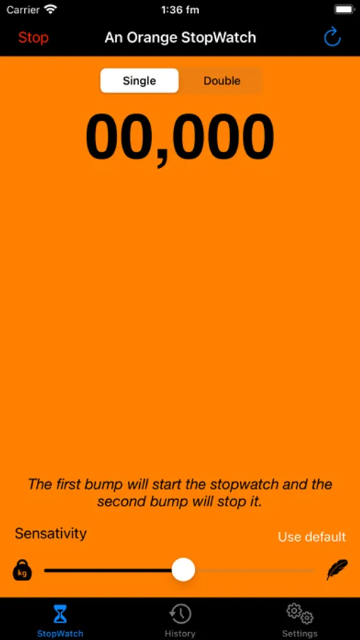 An orange stopwatch that triggers by vibrations rather than a button. Can be used to time events that creates vibrations e.g. running past a point e.t.c.