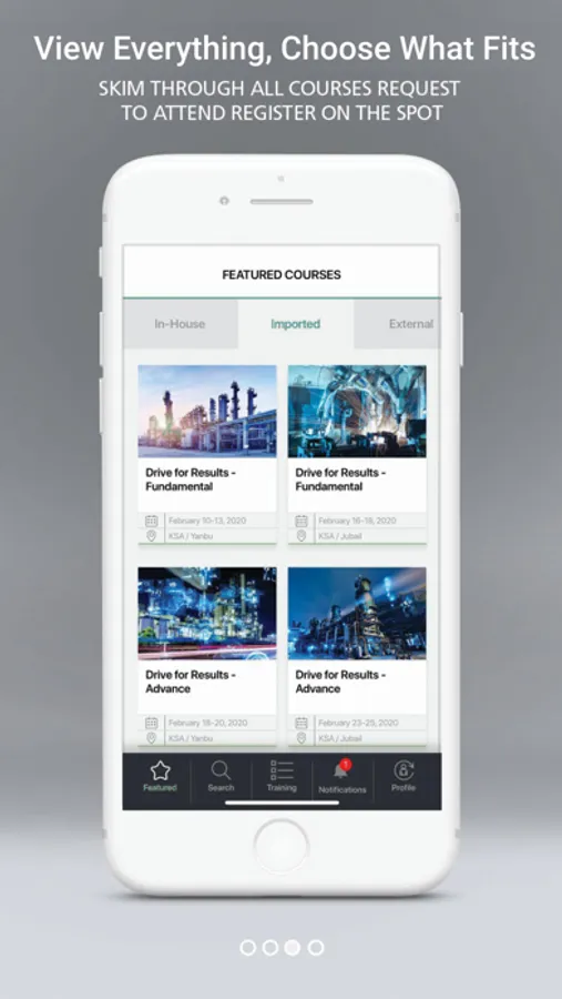 LEORON Internal Development Academy Mobile Application is designed to help you plan your annual training calendar and track your career development in a very easy manner. Now you can access all training related information and content in one place. You can easily skim through course content, check available LVT and e-learning courses, view the list of all available training programs and ask to attend or enroll directly from your mobile device.