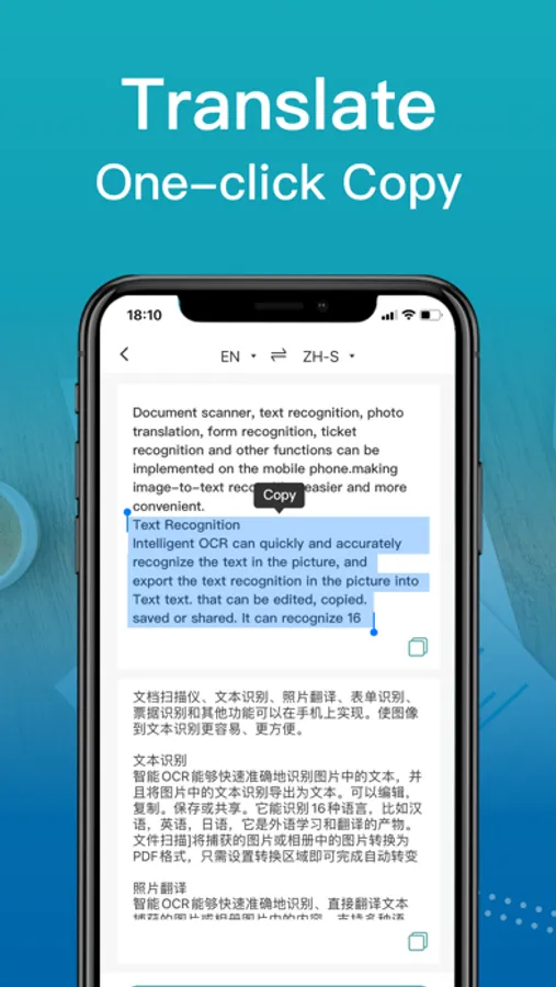 [Multi-page scanning] Supports continuous multiple shooting, fast and accurate text recognition, and one copy of the scan results.
