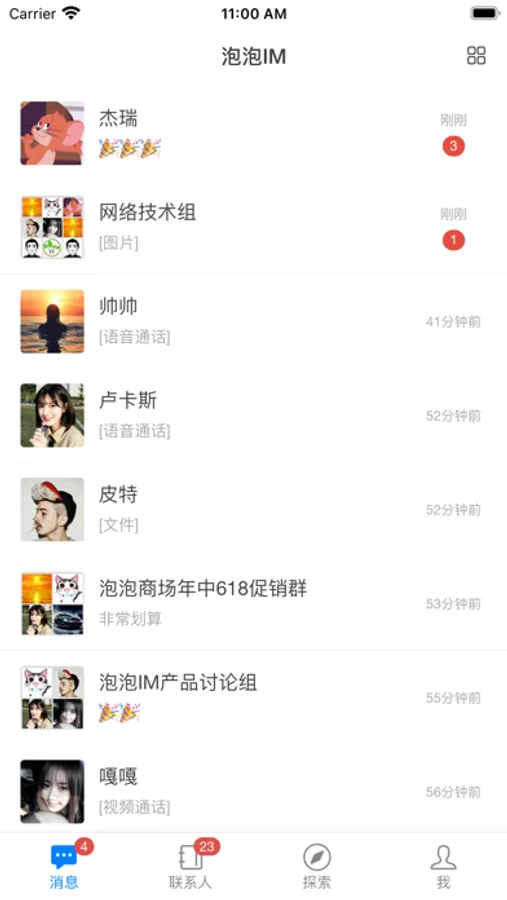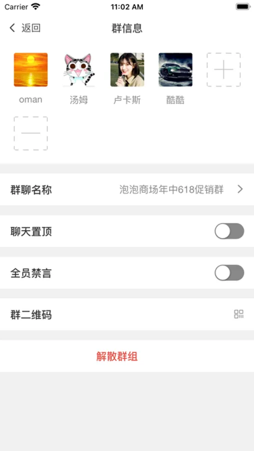 -群聊支持建群、退群、解散群组、禁言、踢人、拉人进群、群备注等功能、管理员