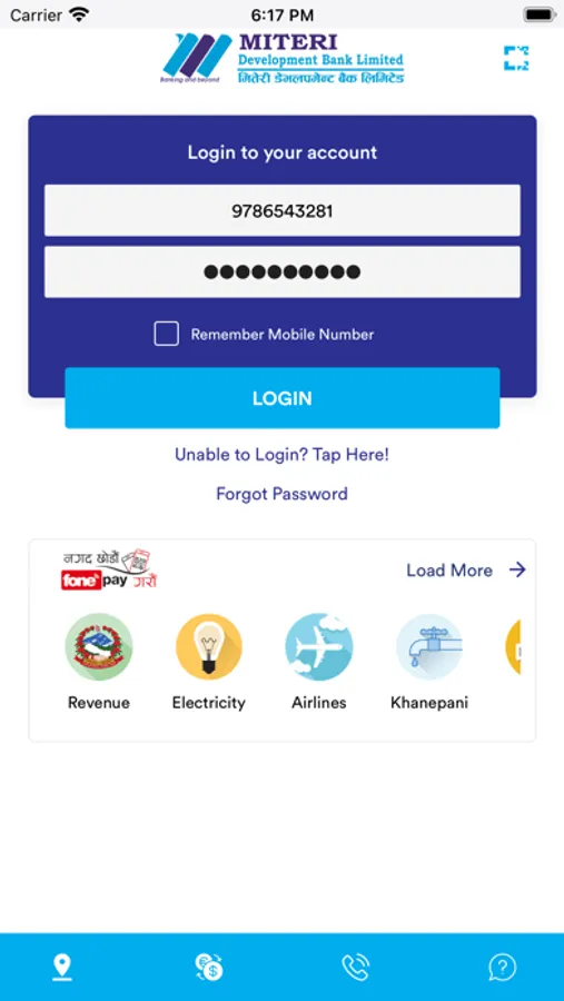 To be able to use this App, you first need to have a valid account maintained at Miteri Bank, and you need to subscribe to the Miteri Bank's Mobile Banking Service.