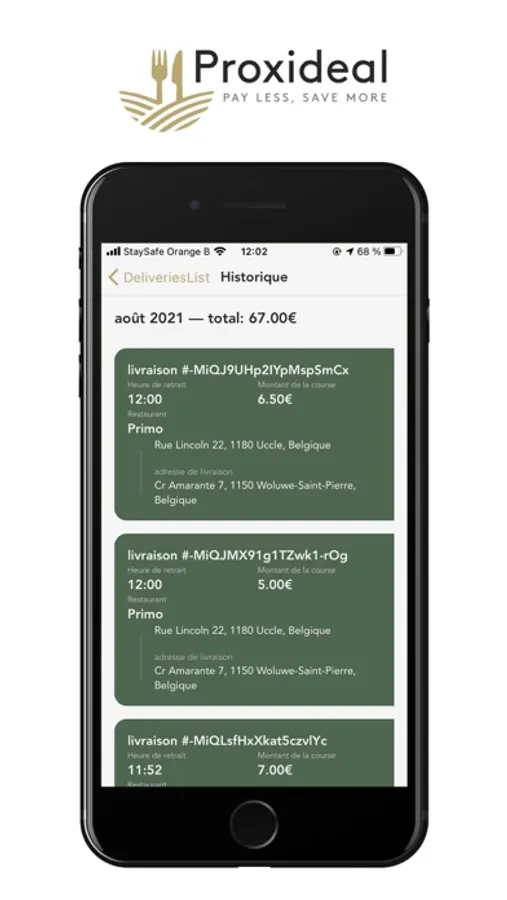 Application pour les livreurs Proxideal. L'application permet d'accéder quand vous le souhaitez à une liste de livraisons de plats depuis nos restaurants et commerces partenaires envers les clients de l'application Proxideal.
