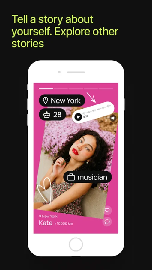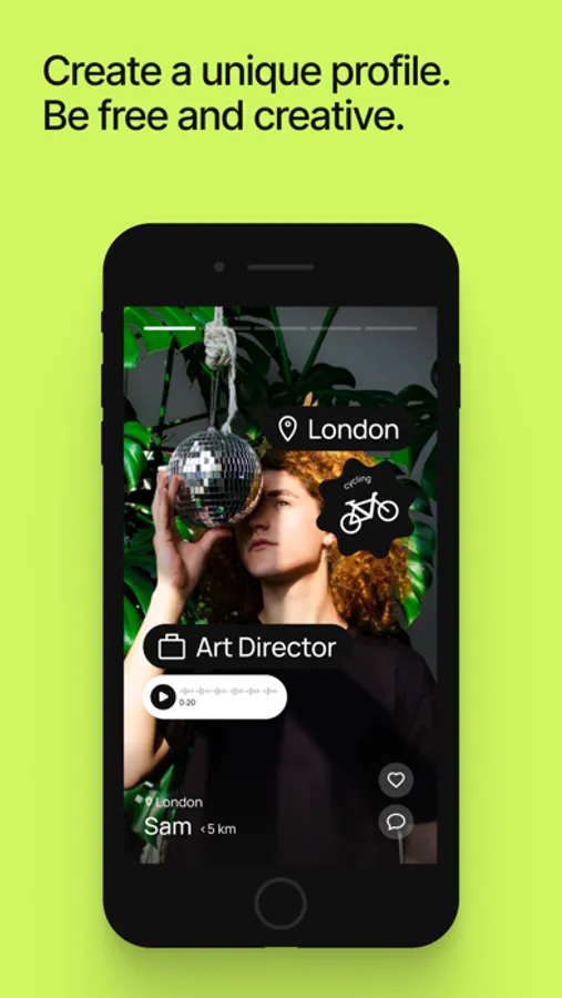 — CREATE UNIQUE PROFILES: your personality is unique, so it deserves a whole new way of creating a profile — fun and creative. Who are you? What is important to you? Tell us about yourself in a new way. Get to know yourself better and tell others about yourself. Express yourself and be free in your self-presentation. This way you can learn more about others as well — each profile is unique, and you will meet new people with whom you will definitely have something to discuss — your interests, work, favorite food, cinema ... which you might want to watch together.