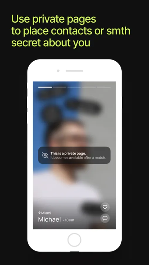 — Make a part of your profile PRIVATE to post more personal information there: your contacts for communication and something secret about you. Private profile pages will only be visible to your matches.