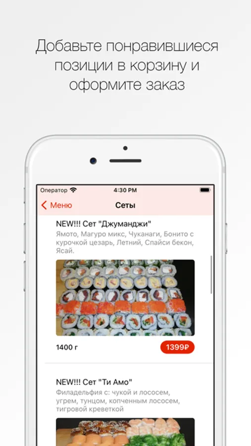 Как сделать заказ в приложении “Магазин Японской Кухни”: выберите понравившиеся позиции из меню, добавьте их в корзину и перейдите на экран оформления заказа (по нажатию на иконку корзины).