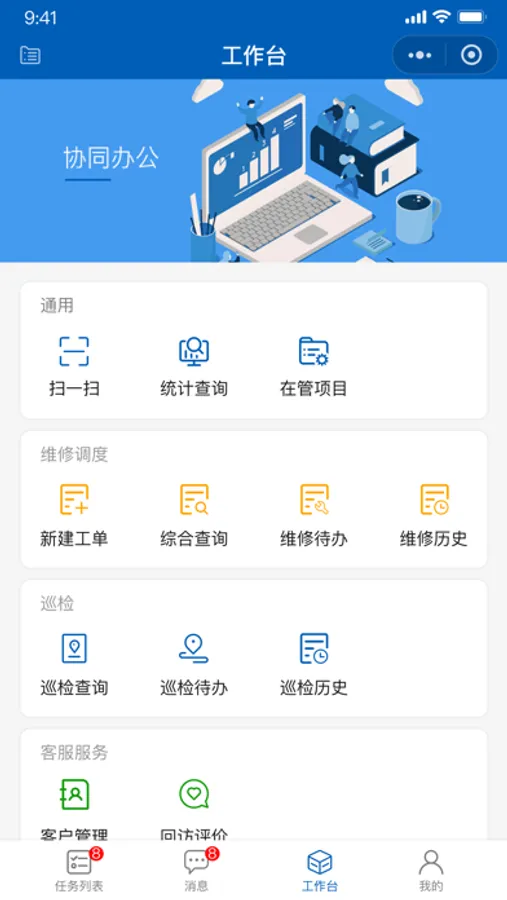 供物业项目的人员使用,用于支持项目中的品质核查、设备管理、设备巡查、维修调度的管理,是一个协同工作的APP软件,为物业管理定制的APP,强化过程管控的集合型专家服务管控平台。通过互联网技术将线上线下打通,实现一站式便捷服务