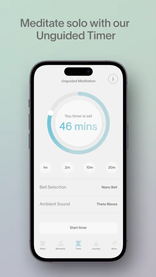 Use our meditation Timer to practise the skills you’ve learned without guidance. Try ambient soundscapes and bells to enrich your experience.