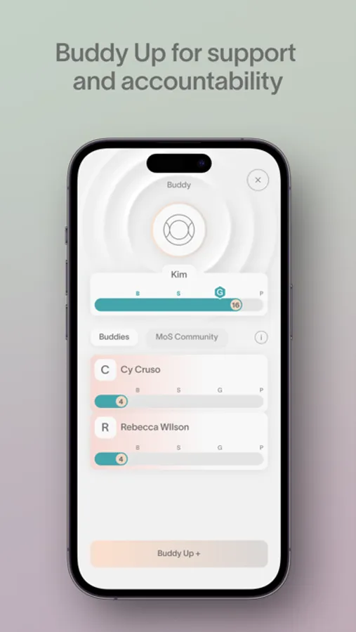 Buddy Up to stay accountable. Invite friends to connect, compare progress, and motivate each other. See how your habit compares to the wider Moments of Space community each month.