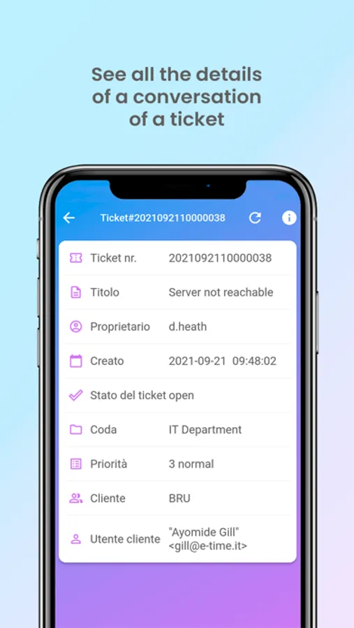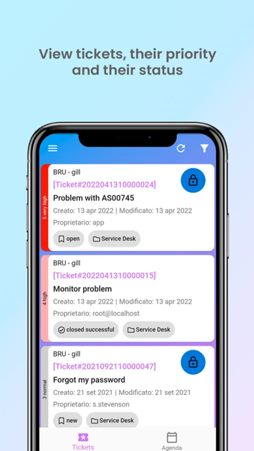 - for each ticket see the object, the customer, the status, the owner, the creation and last modification date, if it is blocked