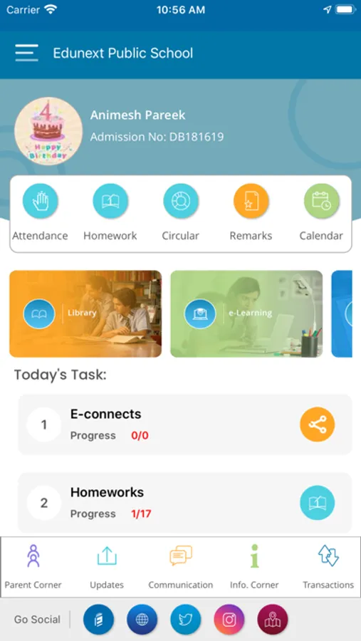 Edunext launches an exclusive app for parents and students enabling seamless access the world of e-learning, take online test, connect to live classes with e-connect and more. Enhanced dashboard with alerts along with separate parent corner to access details related to fees, results, student performance on the go. We shall bring monthly update for the app with new and interesting features. If you are happy, rate us and if you are not, write to us parents@edunexttechnologies.com Happy Appying!