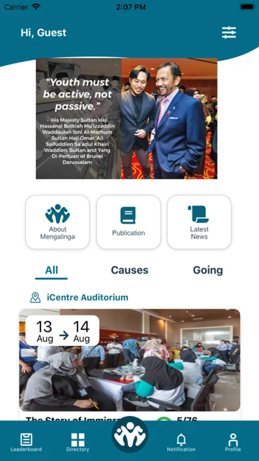 Mengalinga (Caring) is an app that offers new form of fun, informative, dynamic experience for everyone to take part in various volunteering programmes and activities across Brunei with just few clicks away. In addition, this application empowers and provides organisations and agencies the opportunities to offer and promote varieties of community service programmes and projects for the public to contribute back to the society.