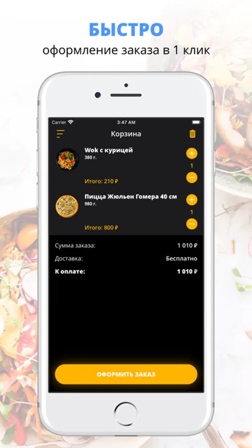 Скачивайте наше приложение, оформляйте заказ и наслаждайтесь любимой едой, где бы Вы ни были! Приятного аппетита!