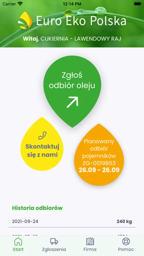 Aplikacja ma za zadanie ułatwić komunikację z firmą Euro Eko Polska w sprawie odbioru oleju posmażalniczego.