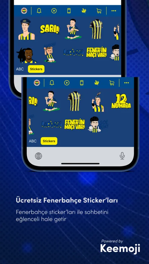 En yeni ve güzel sticker’lar: Anlatmak istediklerini sticker’larla kolayca ifade edebilirsin! Fenerbahçe’ye olan bağlılığını göstermek için klavyedeki Sticker ikonuna tıklayıp koleksiyonu görüntüleyebilirsin!