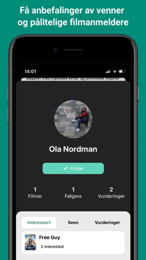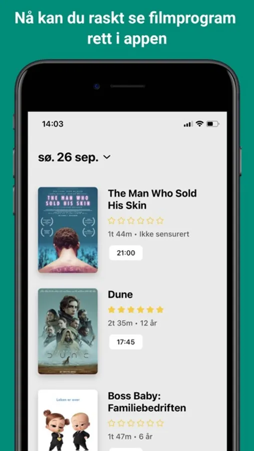 • Merk filmer du gleder deg til som "interessert", og få en påminnelse når de kommer på kino.