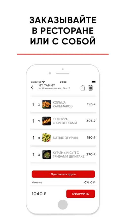 Заказывайте в приложении доставку наших блюд домой, на работу или по особому случаю. А еще, вы можете забрать заказ сами, указав время готовности. Мы соберем все «с собой» точно к этому моменту.