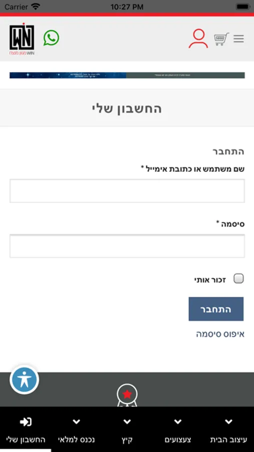לקוח שאינו רשום כמשתמש, יצטרך ליצור קשר בטלפון על מנת להירשם 02-5701931.