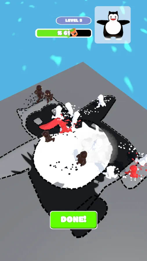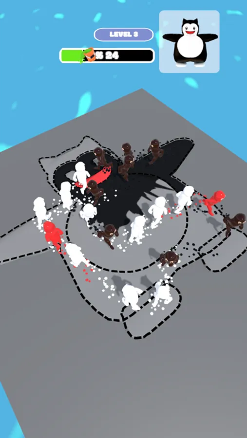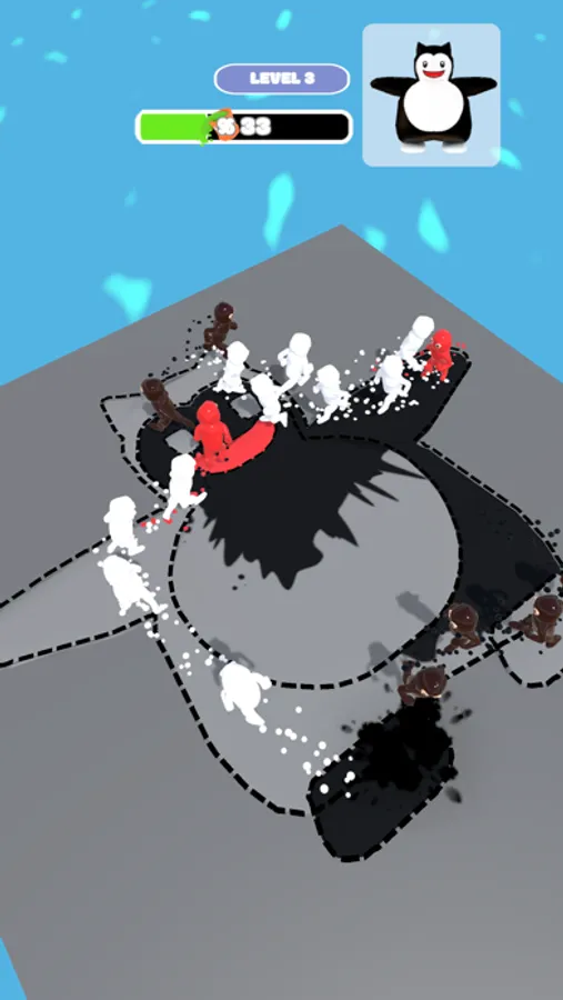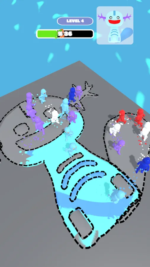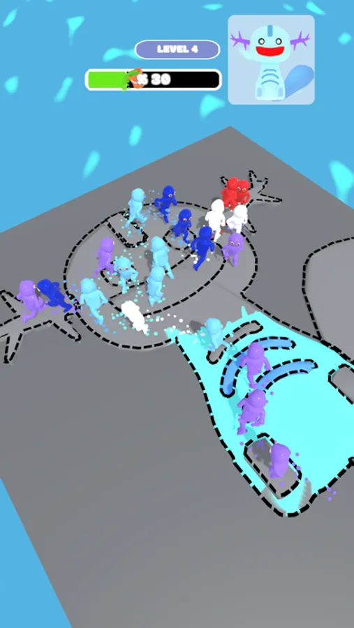 Follow the movement of the dummies, tap and blast them to paint the floor.