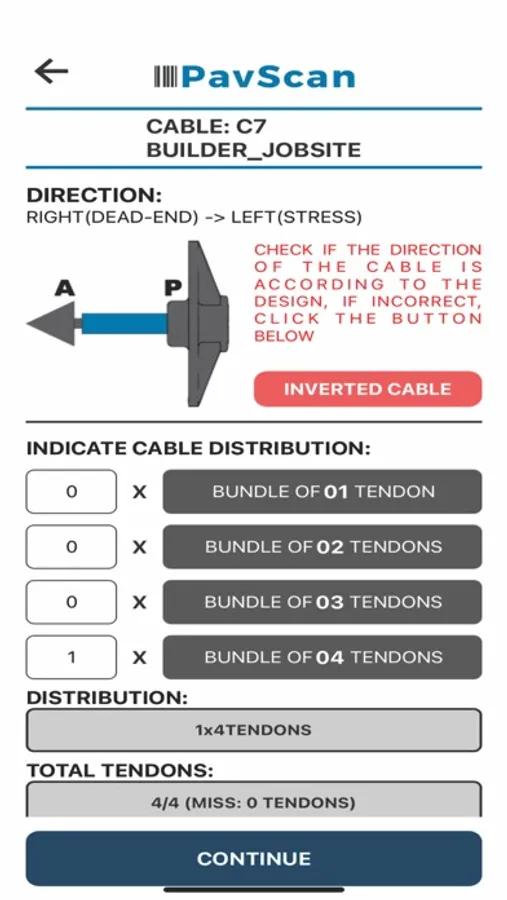 Além da solução do CaboMestre e Caderix, que simplifica a montagem, o Sistema PavScan engloba também o referente aplicativo de conferência e de montagem, o aplicativo PavScan, primeiro processo informatizado no mundo para conferência e montagem da protensão não-aderente, que pela leitura do código de barras do Caderix, montado conforme as informações do Cabo Mestre, registra o estado de como o cabo está montado em obra, identificando não conformidades instantaneamente e emitindo relatórios, de forma transparente e 100% confiável!