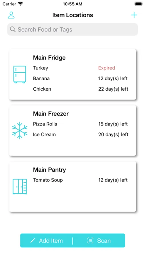 • Search for a food item or its tags to see if you already have the item, when it is expiring, and where it is located