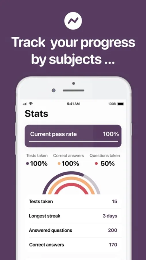 - Track your strengths and weaknesses within Stats section of the app