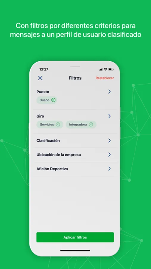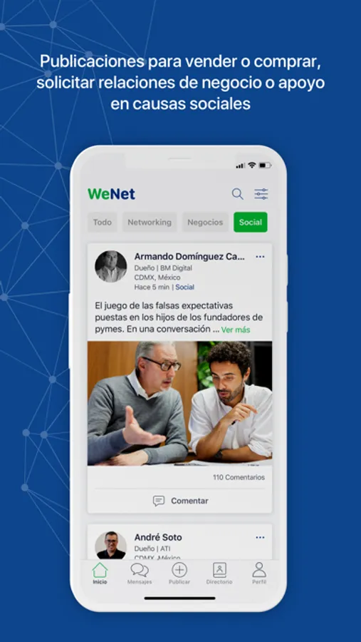 WeNet es la comunidad más importante de relacionamiento de dueños de negocio, emprendedores y niveles directivos que buscan crecer su negocio a través de la institucionalización de empresas. Nuestra aplicación es una plataforma de relacionamiento en la que estarás en contacto con expertos en distintos ámbitos así como dueños de negocio y emprendedores con los que podrás tener contacto directo, ofrecer tus servicios, hacer negocios y aprender a través de contenidos especiales.
