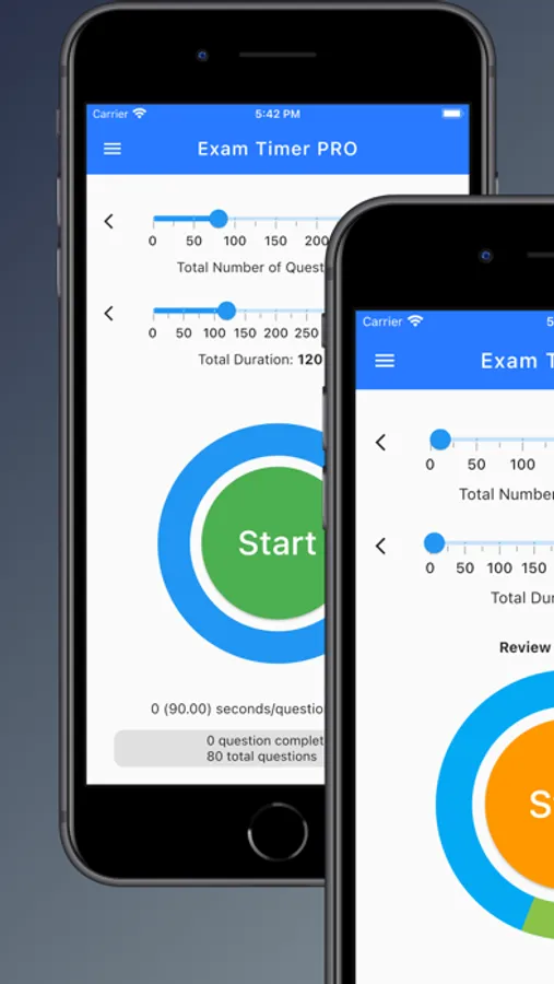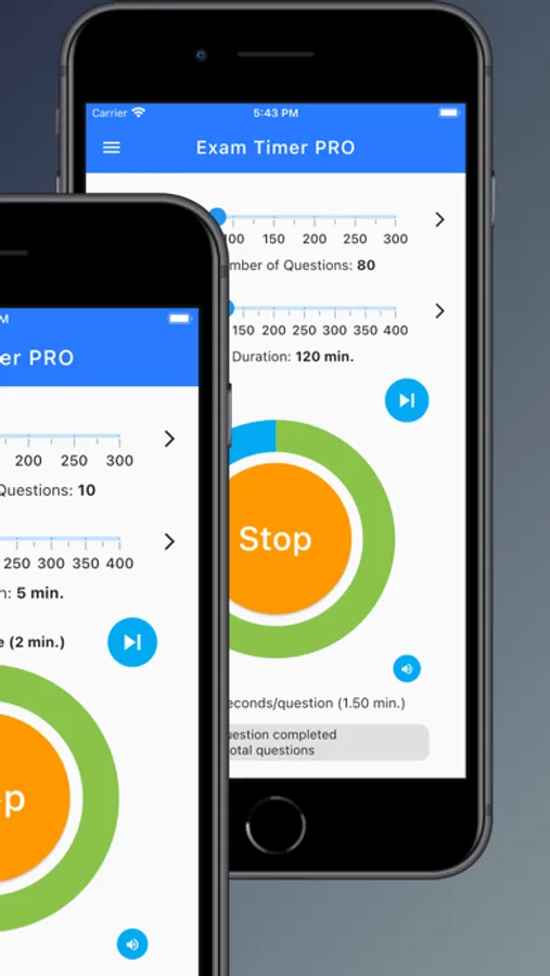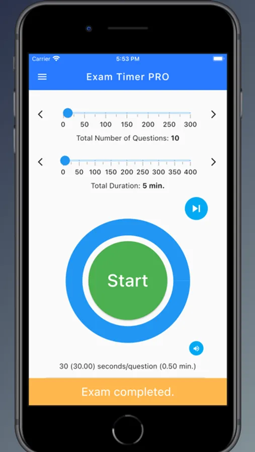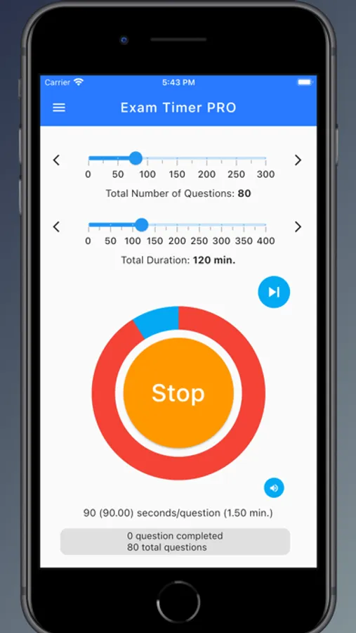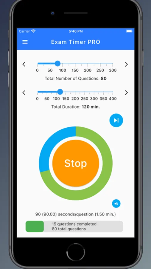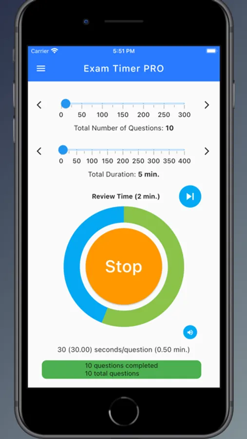 Simply, select the total number of questions and the total time. The application calculates the amount of time per question.