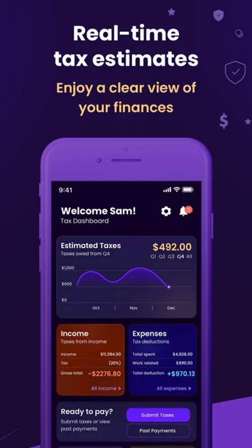 - View your tax estimates in real-time - no more guessing or worrying about whether you're on track