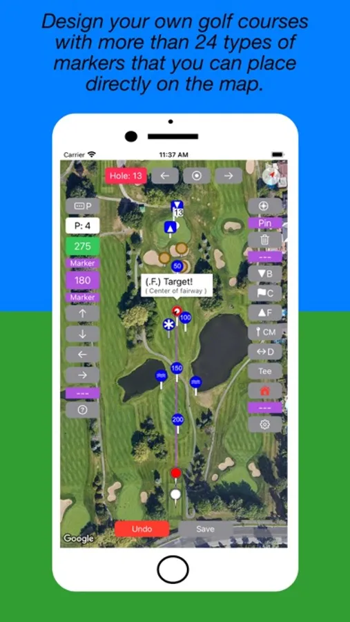 - You have all the tools to design your own golf courses with more than 24 types of marker that you can place directly on the map.
