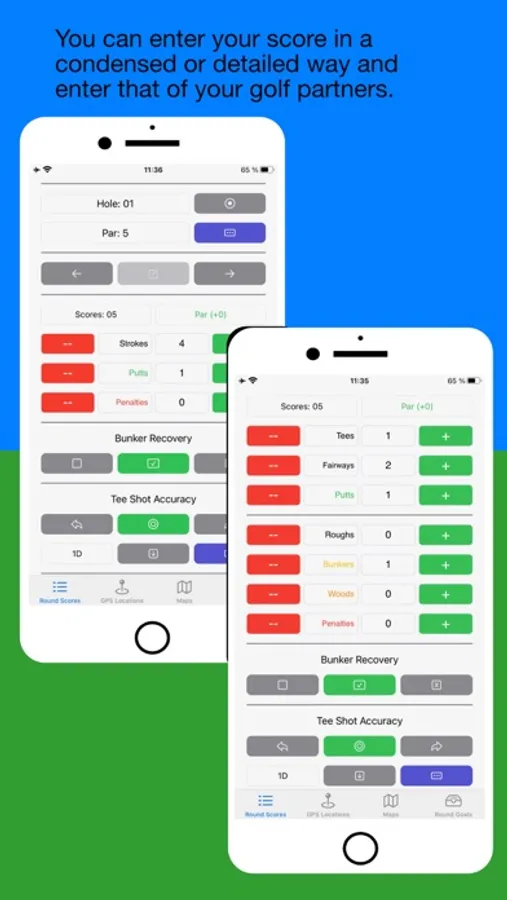- Or enter your score in a condensed way, with only 3 data (shots to reach the green / putts / penalties).