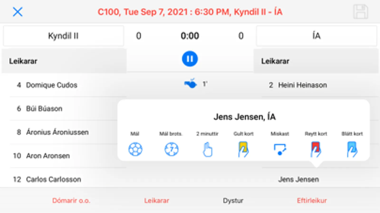 * register match events e.g. goals, 7 meter goals, 2-minute suspensions, yellow cards, timeout, etc.