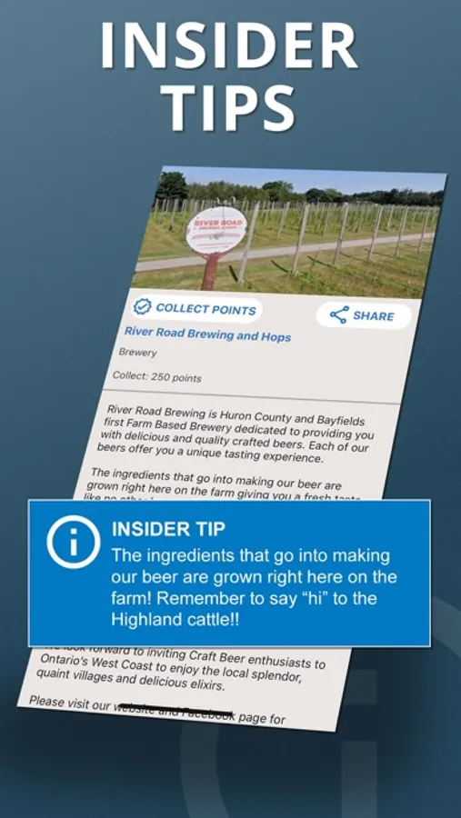 By visiting featured locations, you can collect points that will enter you into a monthly draw for a gift certificate to one of the many fine local food experiences Ontario's West Coast has to offer. Use the mobile app to discover and savour the many tastes of Huron County, and with each visit, you will improve your odds in winning the monthly prize.