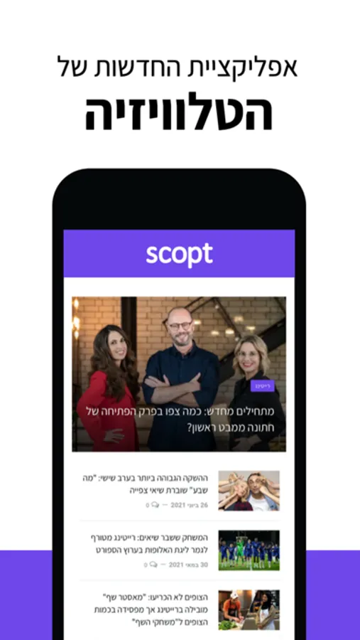 הורידו את אפליקציית Scopt החדשה ותתחברו בקלות אל עולמות התוכן שלנו ישירות מהטלפון הנייד!