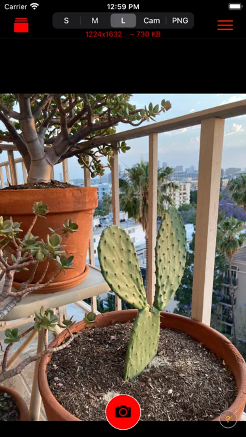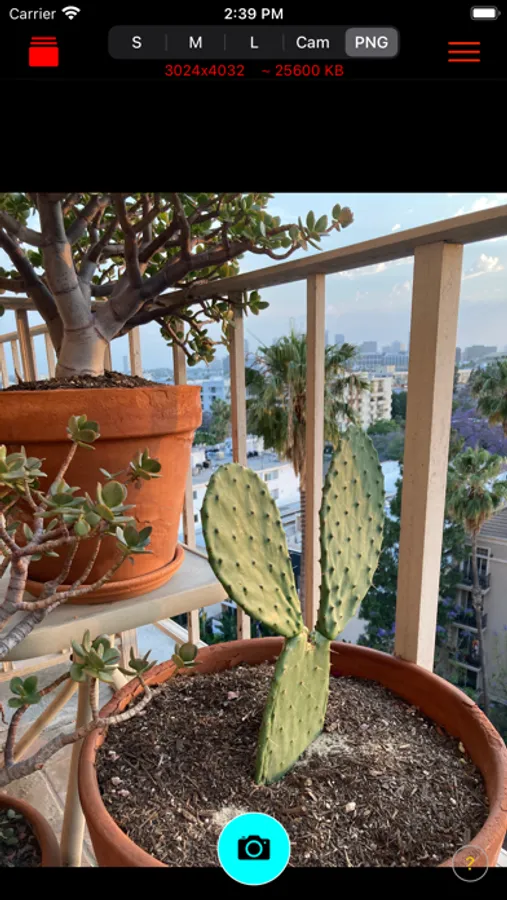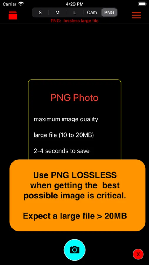 But there are also times when you want maximum image quality and when file size is not a consideration. The Camera takes a great image, but it is converted to JPG (or HEIC), which is a lossy compression format. Izzi Pics allows you to take and store the image in a PNG lossless format. In this format, information in every pixel is retained, but at the cost of a large file (~ 20MB). PNGs have a high color depth, so the format can easily handle high resolution photos.