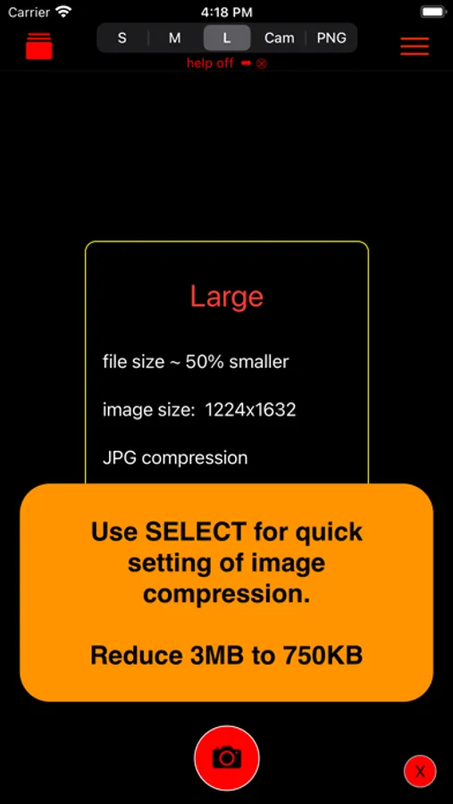 Izzi Pics is an app that allows you to take an image and compress it BEFORE it is stored. For some images, a compressed image works just fine. With Izzi Pics you can reduce images to 100KB, which is a 96% reduction in file size, and still get the job done. If you need more detail, change the compression setting and capture the data at the quality which is appropriate.