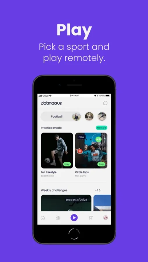 No time to exercise? Use your smartphone to record yourself for 30 seconds, our artificial intelligence-powered referee reads your movements and scores your performance. The better you move, the more you’ll win. Challenge yourself, your friends or famous athletes in freestyle football or dance and earn prizes playing the sports you love.