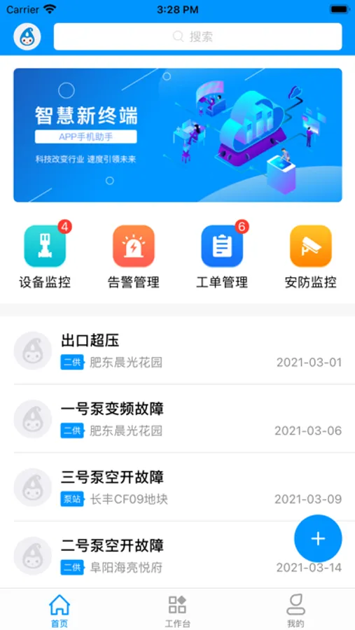 手机智慧助手汇集智慧水务各子系统中的核心模块(设备监控、视频监控、安防门禁、告警系统、运维工单、报表管理、水质监测、人车轨迹等)。监控供水公司的水源地、水厂、管网、加压泵站的设备,监控污水厂污水站点的设备。为运维人员,管理人员提供简单且智慧的交互。实现移动办公、远程监控、实时监测的作用,提高工作效率。