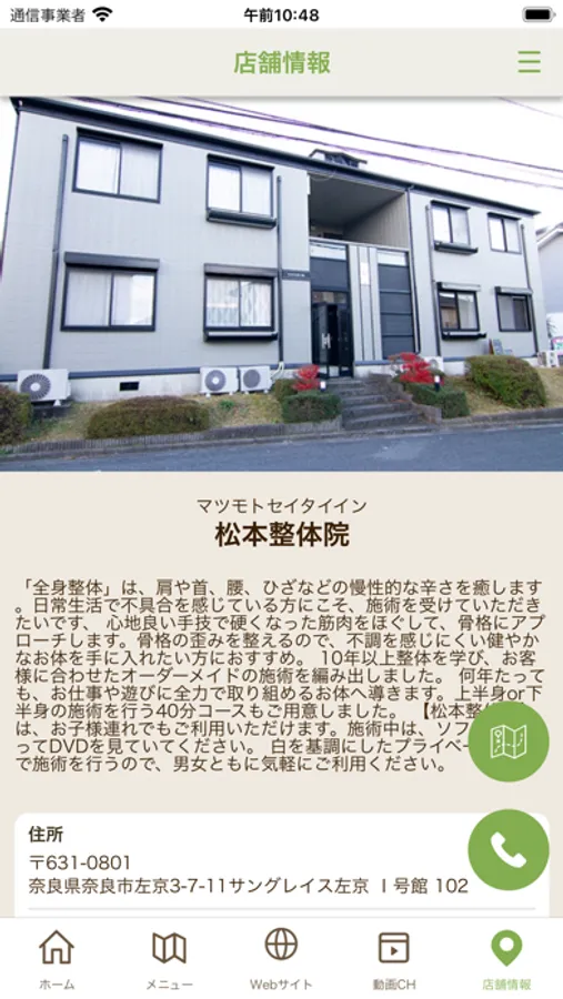 店舗のマップが表示され、地図アプリとも連携しているので、初めてのご来店の時も簡単に見つけることができます。