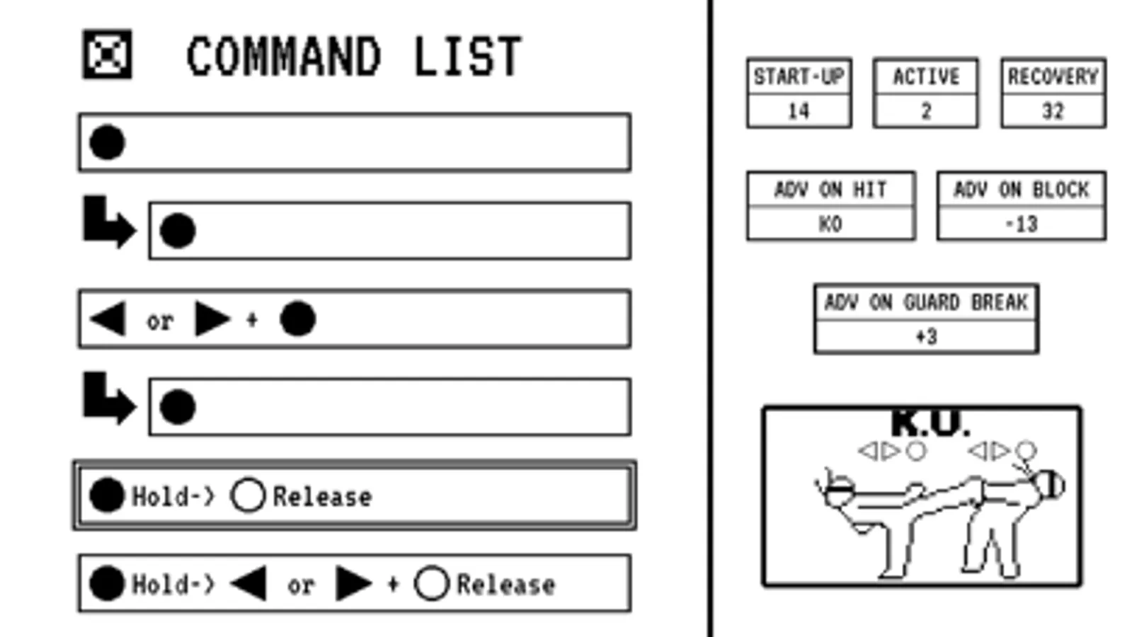 - Command list with frame data