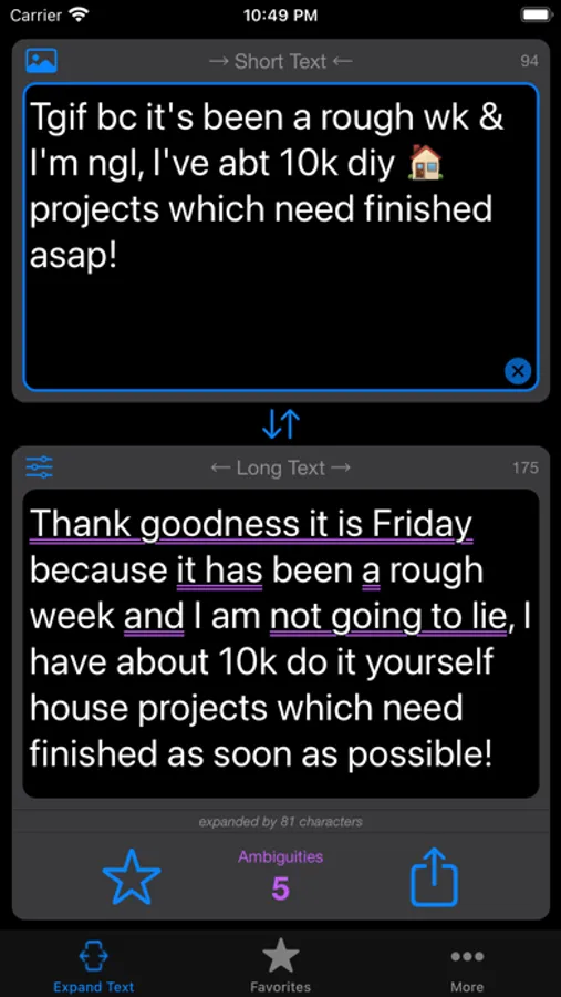 • Switch to expand mode to quickly convert abbreviated text into its expanded form