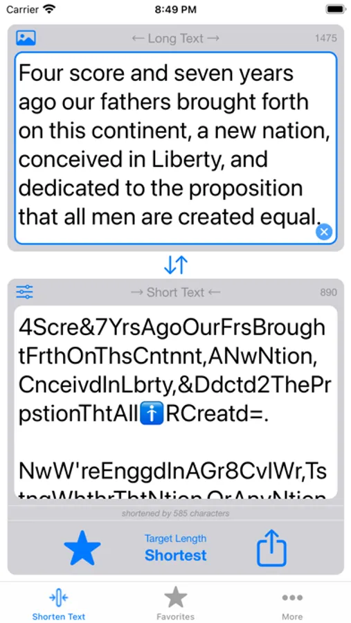 • Adjust shortening target length to meet specific character limits