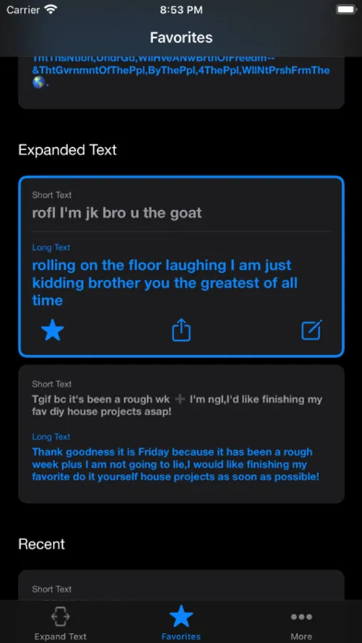 Have you ever needed an easy way to shorten messages? Do you ever get confused by abbreviated words or internet slang? Maybe you have a unique style of shorthand that you wish you could share with friends? The Short Text app is your solution for these and many other short text needs!