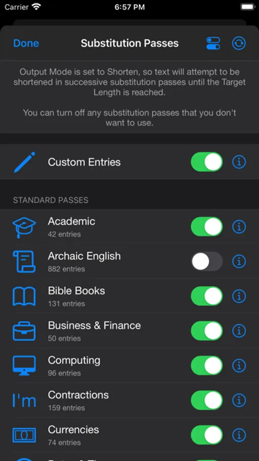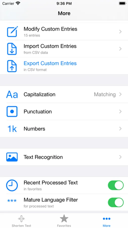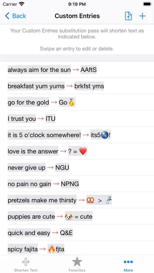 • Add your own custom entries for shortening or expanding text