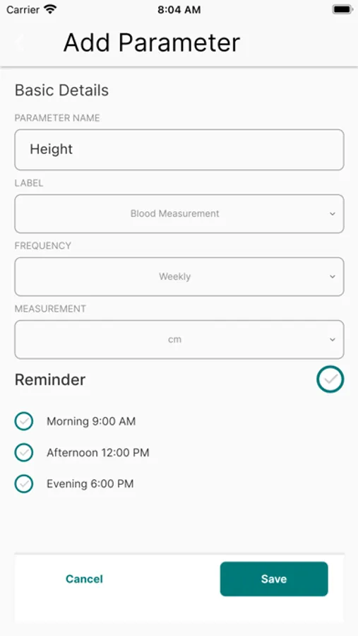 • Regular Checkup Schedule - patients can set up schedules for home monitoring and will be notified considering the schedule.