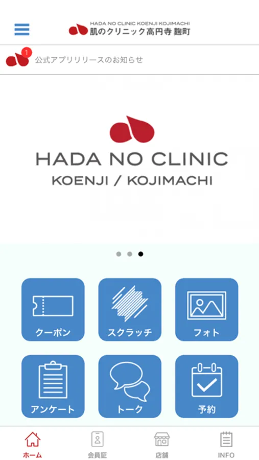 クリニックの最新情報をお届け/アプリ会員証/アプリからweb予約など