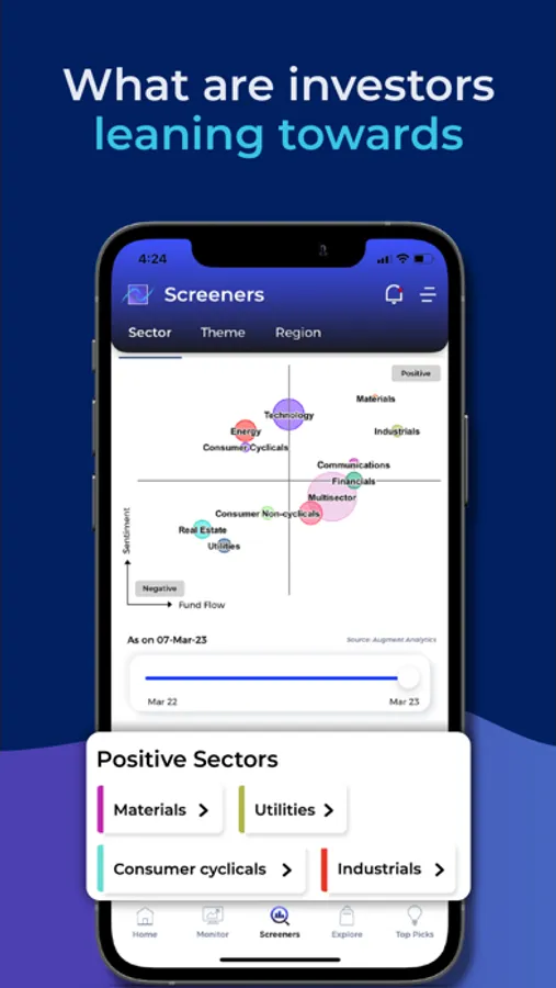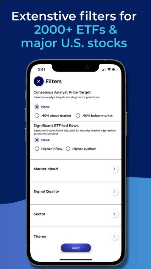 With Augment, you’ll gain access to unbiased and robust sets of signals based on market mood, generated by similar quant processes that are available, 24/7, across a range of securities with powerful filtering tools to enable you to identify investment opportunities.