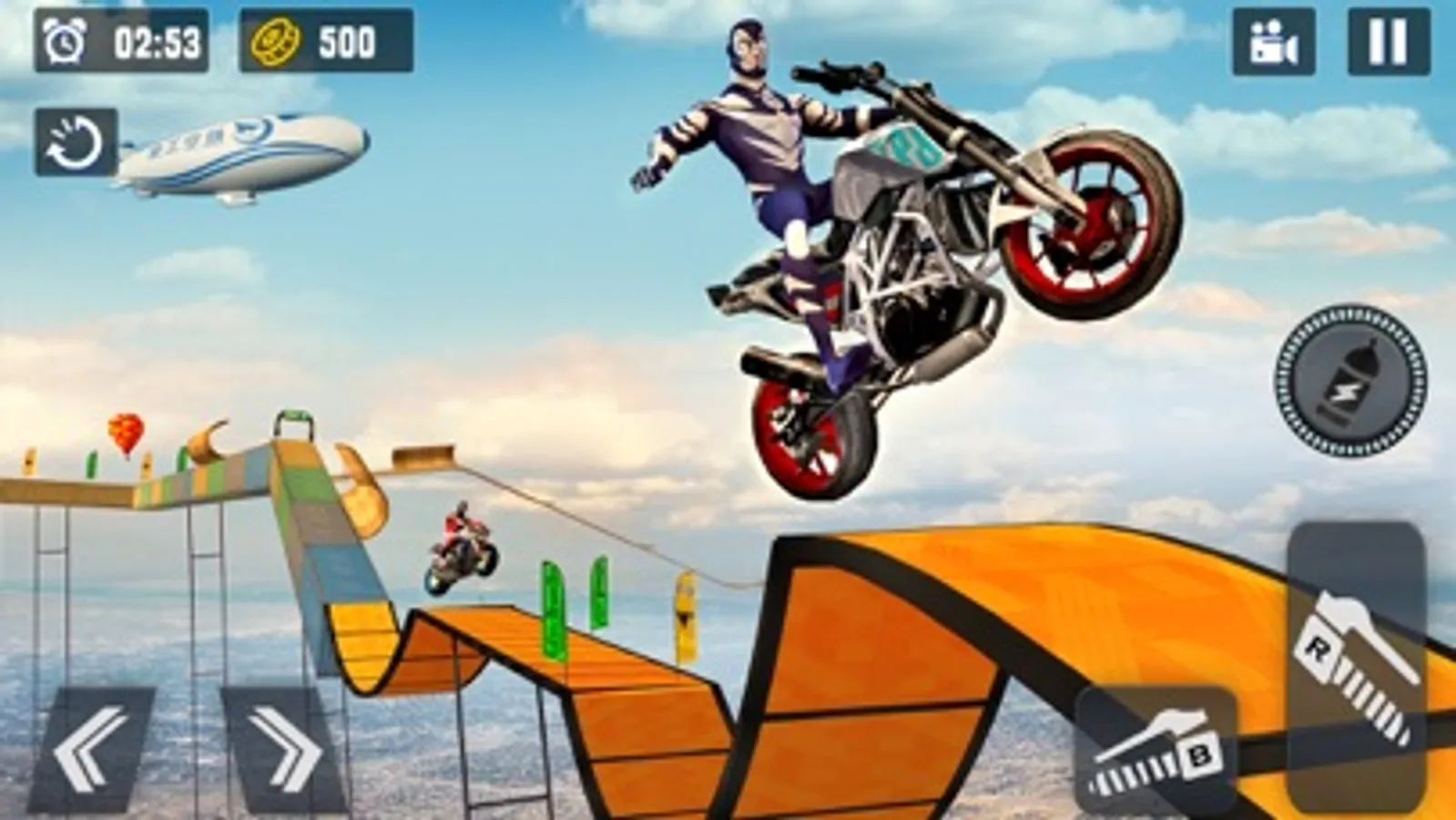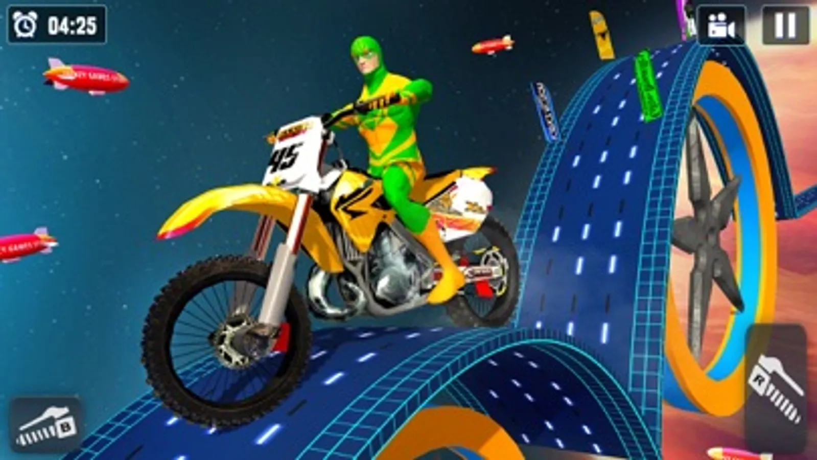 Do you like to play bike stunt racing games on mega ramp tracks? If yes then play this tricky motorbike stunts game with the addition of vertical ramps, superhero stunt race, and amazing bike stunts.